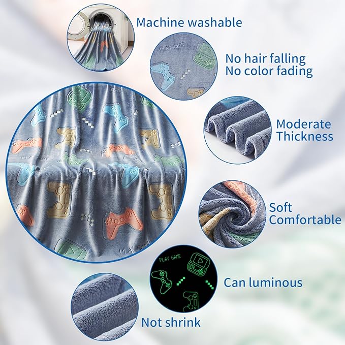 - Glow In The Dark: Game Controller Gifts for Boys,As a unique gifts for boys kids, the glow in the dark cute stuff game controller blanket can light up the stars at night for teen boys kids, whether it's birthday, Christmas, Halloween, Easter, Thanksgiving, or any other game controller party supplies come surprise.