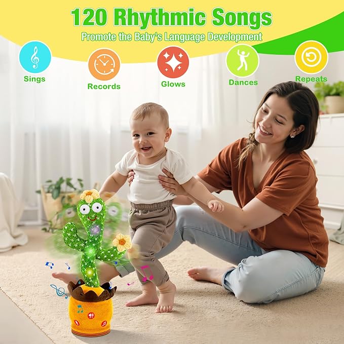 - DANCING AND TALKING CACTUS TOY - Its cheerful music stimulates auditory senses, while its engaging movements grab their gaze for visual training - plus, it lures babies to lift their heads during tummy time, boosting that essential skill. Easy, fun, and perfect for babies & toddlers of all ages/months