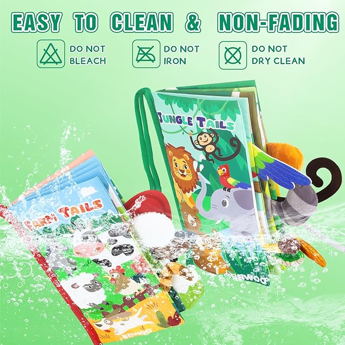 - Safe and Durable for Curious Babies: Made from non-toxic, skin-friendly fabric with strong stitching, our soft baby books are safe for curious infants who love to chew. With no sharp edges, they protect your baby's skin. These washable baby books are easy to clean and designed to last.