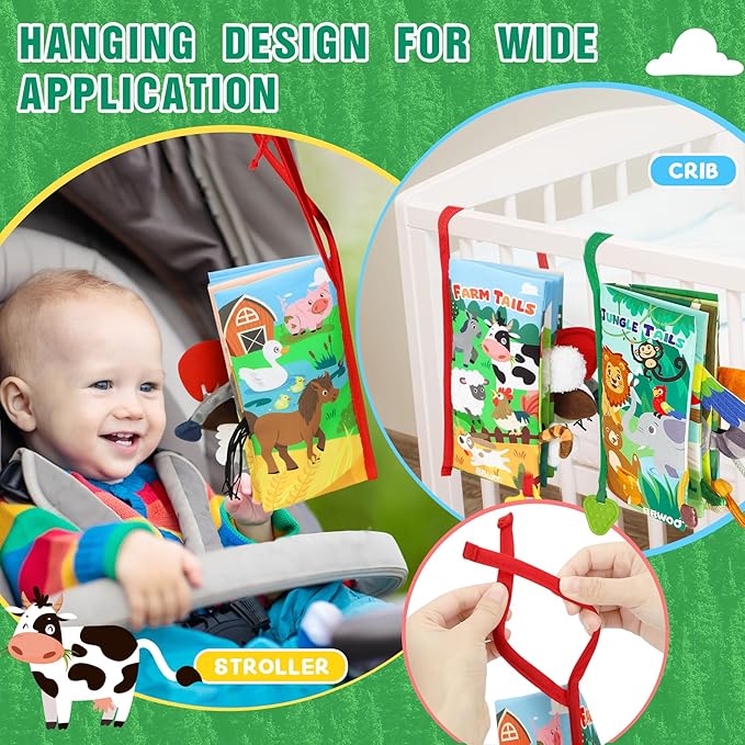 - Ideal for Tummy Time and Travel: Enhance tummy time with these colorful, engaging soft books. Babies will enjoy touching and flipping through them. The books have cloth straps to attach to strollers, car seats, and play gyms, making them perfect for travel and keeping your baby entertained on the go.