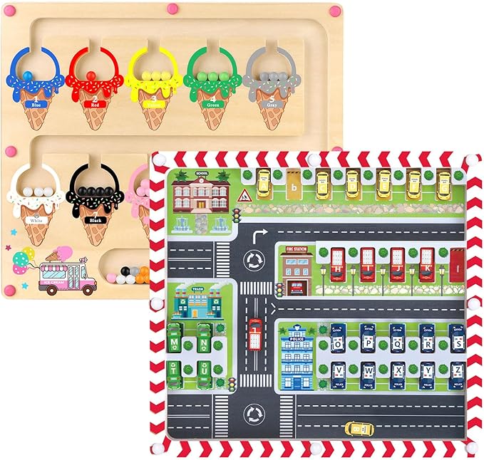 - "【2 -In -1 Magnetic Letter Maze】 Ice Cream Magnetic Maze is a puzzle toy that can help children identify colors and learn numbers. Children can enjoy the fun of color classification and counting, and stimulate the interest of learning numbers and colors. The magnetic maze of the parking lot is an interesting way for children to learn.Find the correct method to complete the word or achieve specific goals.It challenges their ability to solve problems and space consciousness."