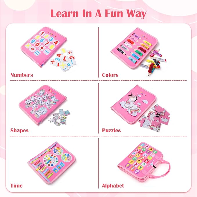Busy Board, Montessori Toys for 1 2 3 4 Year Old Girl Birthday Gifts, Educational Sensory Toy for Learning Activities Fine Motor Skills, Road Trip Airplane Travel Toys for Toddlers Kids Age 1-3 2-4