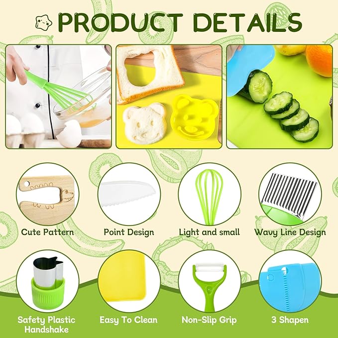 - 【Fantastic Kids Toys】: The Montessori knife set is perfect for toddlers engaging in pretend play, especially those aged 4-12. These kids' knives designed for real cooking not only provide entertainment but also inspire intrinsic motivation. The toddler knife set serves a dual purpose as both a toy and an educational tool, prioritizing safety for toddlers