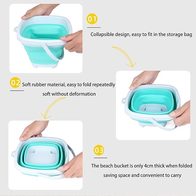- CONVENIENT STORAGE: The collapsible bucket and mesh bag allow easy transport and storage of all toys when not in use or after a fun day at the beach