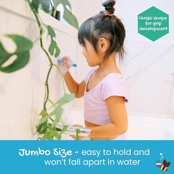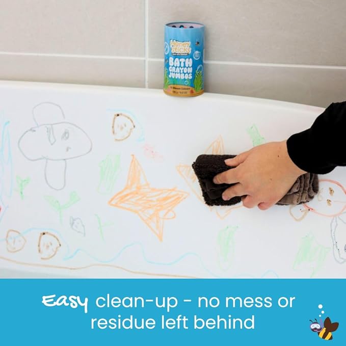 - EASY GRIP FOR SMALL, WET HANDS - Honeysticks Jumbo Bath Crayons are long (3.9 inches) and thick (0.49 inches) so they are easy to hold and use. The generous size ensures durability, lasting longer without snapping or disintegrating like others.