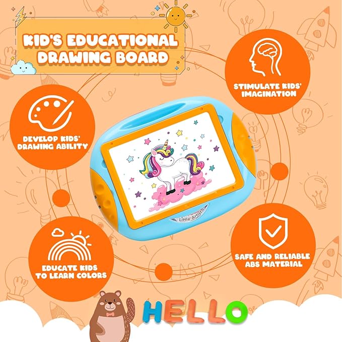 - 🎨【Drawing Board For Toddlers 1-2】 - This doodle drawing board specially designed for toddler aged 1-3 is about 12.5 IN length, 10.2 IN width and 11 IN height, just the right size for kids to play with. The unique double-sided design provides endless creative opportunities for kids, helping them learn math and word recognition.This drawing pad is not only a toys for 1 year old, but also an art tool to enlighten kid's intelligence. Let your baby grow up happily in an artistic atmosphere!