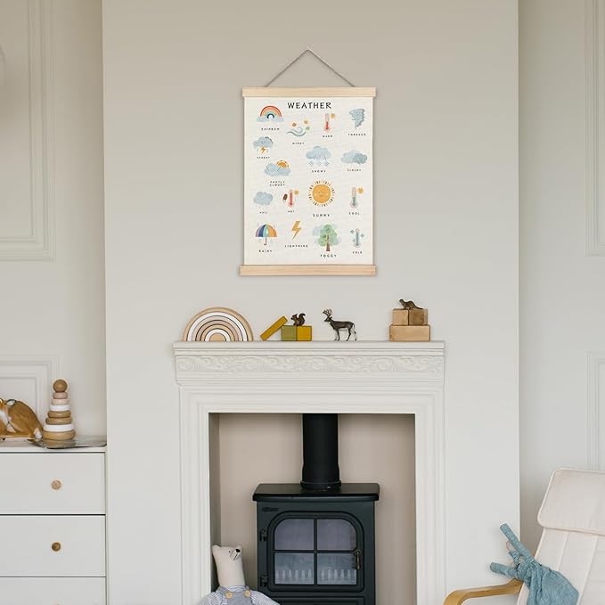 Supwhd Weather Poster, Weather Educational Poster Frame, Nursery Wall Decor, Weather Learning Postersfor Nursery Kids Room Playroom Classroom Preschool Decor, 12x16