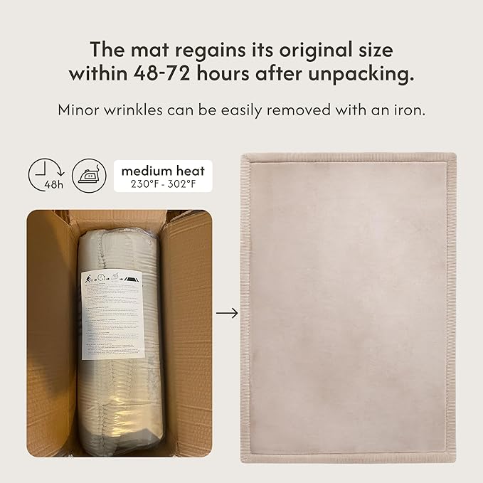 - Premium high-density memory foam is 1 Inch thick and recovers its size faster (within 3-4 days) compared to cheaper alternatives. The large and thick floor mat for baby arrives blanket-folded and does not require ironing the wrinkles, unlike vacuum-packaged rugs. Compressed packaging saves space during transportation reducing carbon emissions.