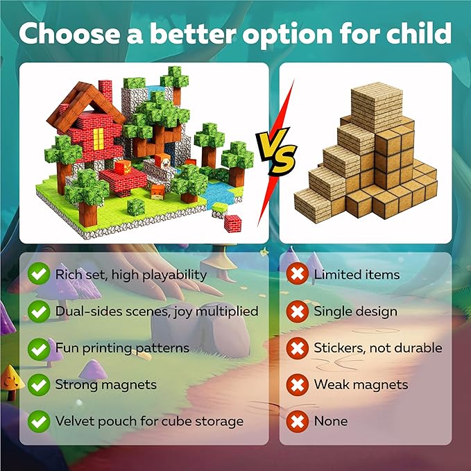 - 🎁 [GIFT OF GROWTH] Elevate playtime with magnet cubes and magnetic cubes that enrich any collection. A perfect gift choice, these kids magnetic blocks foster teamwork, imagination, and learning—making every build a memorable triumph!