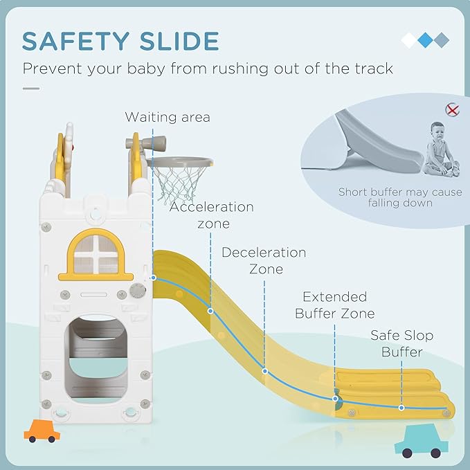 - Safe Indoor slide: Our kid's slide includes an acceleration, deceleration, and buffer zone, ensuring a safe experience for your little ones. The staircase's closed-step design prevents tiny feet from slipping through, and it features a non-slip texture to keep playtime safe and enjoyable.