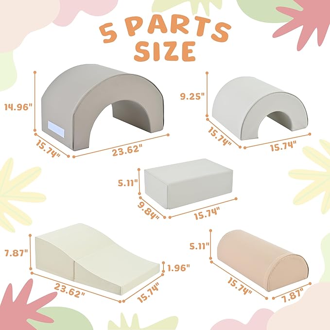 - Fun & Versatile Indoor Climbing Blocks - The Merax 5-piece rainbow soft play set consists 3 different sizes of arches, which fit together to form a rainbow, and can also be played separately - to create an obstacle course, use as a balancing element or a rocker.