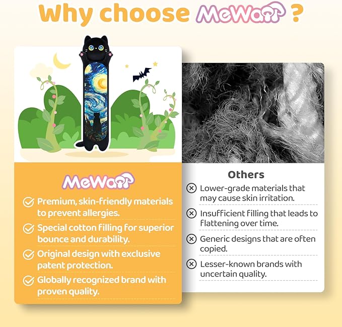 - Cat Body Pillow Multipurpose: This long cat throw pillow provide you not only a multiple-size hugging pillow, but also the best lumbar body pillow when you sitting on a sofa, and also the most comfortable sleeping pillow for a sweet sleep on the bed.