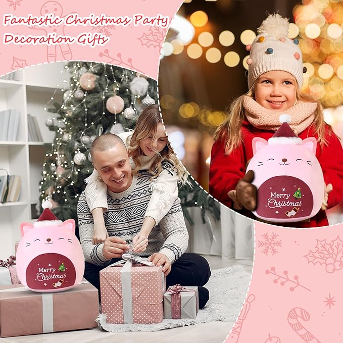 - 【Christmas Gift】 This exquisite "Merry Christmas" sign cat plush can decorate a Christmas party or as a gift for family, children, friends, etc. A kawaii shape will bring them good luck and happiness.
