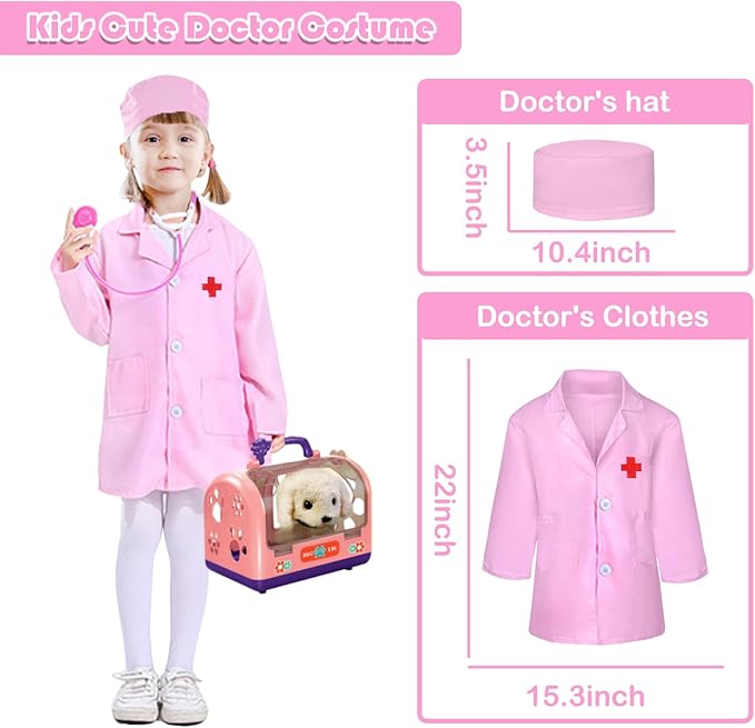 - EDUCATIONAL VALUE: Designed for children ages 3-6, this toy develops children's imagination, empathy, nurturing skills, and understanding of animal care. Put on a doctor's uniform, put on a doctor's nameplate and grab medical tools to help kids simulate a real veterinary exam. Pretend play and role play will bring endless fun to children