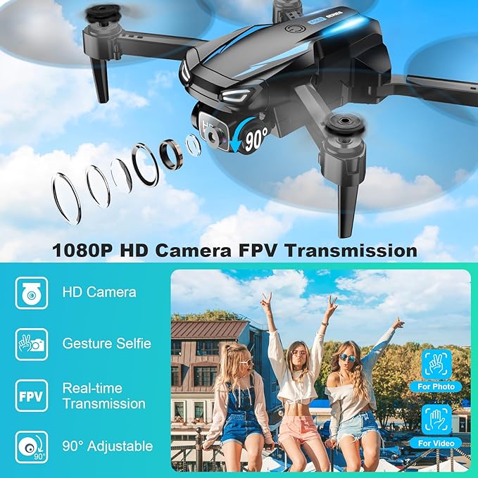 - 1080P Adjustable FPV Drone: Equipped with 1080P HD camera and 90° remote controller adjustable lens, this drone can bring you a stunning aerial photography experience from different perspectives to broaden your views. By connecting the drone with ”DAZLEN FPV” APP, it allows you to view the fabulous scenery in live through the FPV technolog, immerse yourself in the excitement of the distant aerial exploration and share the extraordinary moments with friends on social media.