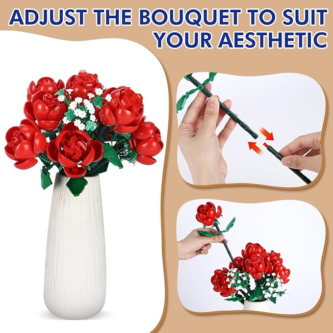 - Meaningful Gift: The Dexblocks Flower Bouquet set is a unique and thoughtful gift for friends, loved ones, or even yourself, suitable for any occasion. Its lifelike design adds a special touch to proposals, wedding parties, anniversaries, Valentine's Day, Thanksgiving, Christmas, and birthdays.