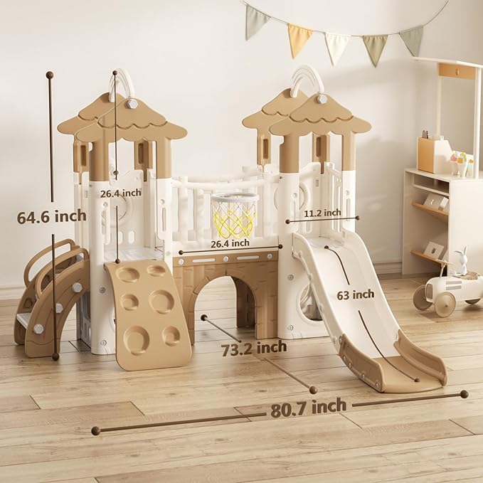 - Extra Long Upgraded Slide Size: The length of our slide is extended than the length of the regular slide, the length of the slide is up to 63 inches, which is conducive to children's slide length extension. Our climbing slide playset is 80.7 inches long, 73.2 inches wide and 64.6 inches high. Ideal for toddlers ages 1 and up