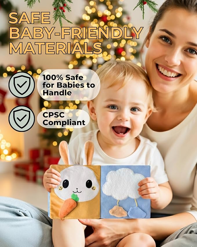 - 100% Safe, Baby-Friendly Materials: Strongly stitched fabrics and gentle textures for babies to hold, squeeze, and play with. Our soft books for babies 0-6 months ensures 100% peace of mind.