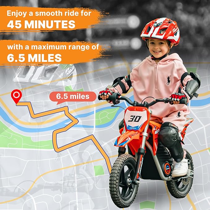 - Ideal Gift for Kids Adventurers: Designed rounded seat edges and broad pedals, kids motorcycle not only looks great but performs spectacularly. It’s the perfect choice for kids who dream of off-road adventures