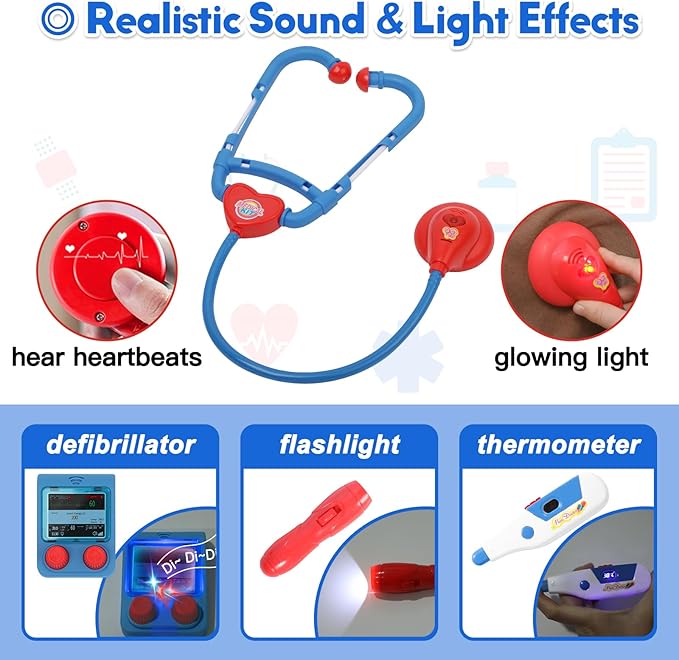 - Realistic Doctor Role-Play: Our kids' doctor playset features a lifelike medical trolley with sound/light tools & a doctor's costume, immersing children in authentic medical scenarios through imaginative play