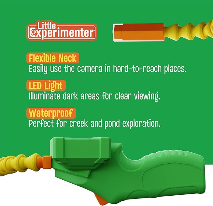 - REAL-TIME EXPLORATION WITH LED LIGHT: Dive into an educational adventure with the Snake Scope's high-resolution camera and flexible 22-inch tube, streaming live images straight to the screen. The built-in LED light lets kids explore even in the dark. Uncovering nighttime secrets with ease and making every discovery more thrilling.