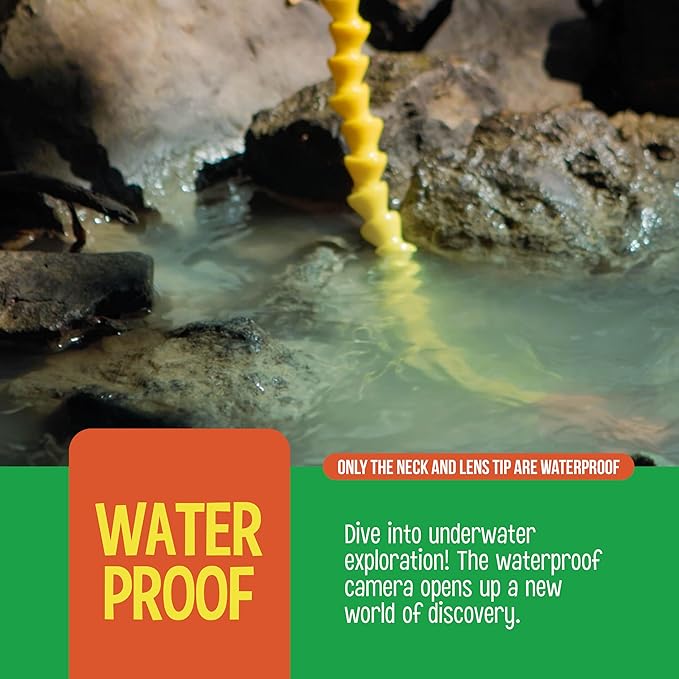 - WATERPROOF TUBE FOR AQUATIC ADVENTURES: Take the excitement underwater! The waterproof snake and camera allow kids to explore ponds, streams, and fish tanks safely. Watch fish swim, discover underwater plants, and uncover the mysteries of aquatic life, providing a fascinating glimpse into the underwater world.