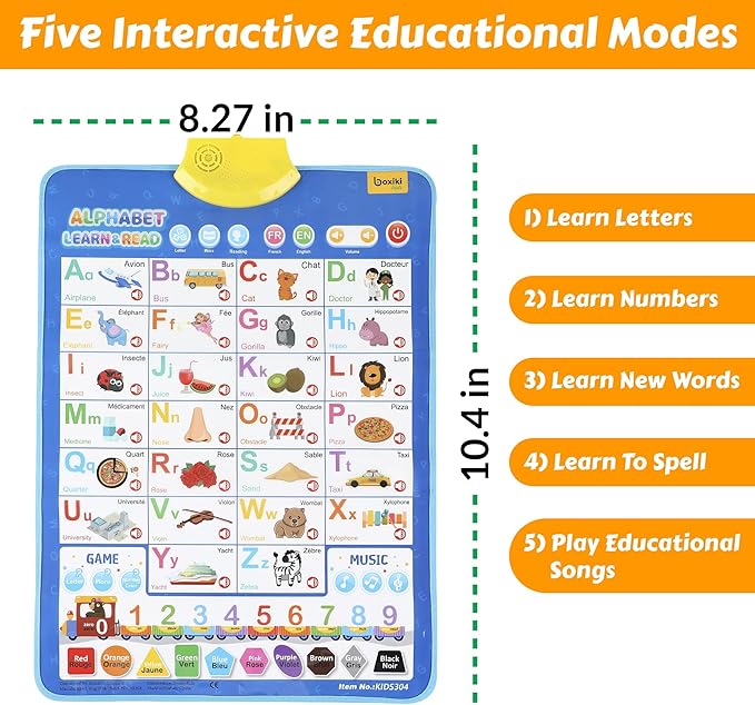 - Bilingual Learning Toy - French & English: This interactive toy teaches toddlers and preschoolers alphabet sounds, new words, numbers, and spelling in both French and English. Ideal for children ages 3-6, it’s perfect for early bilingual education.