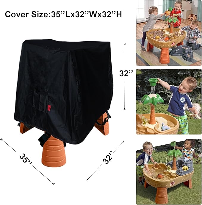- Cover Size:Perfect fit Step 2 Dino Dig Sand and Water Table. Outdoor table cover covers these outdoor toys for toddlers 1-3 perfectly to protect your expensive baby water table. Size up to 35 inches W x 32 inches D x 32 inches H. Please measure your kids outdoor table dimensions before purchasing.