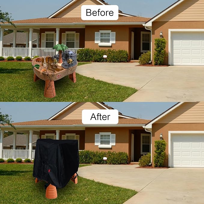 - Windproof Design: This outdoor toy table protector has 3 buckles and a drawstring to keep it on the legs of the table and prevent it from being blown away by strong winds.