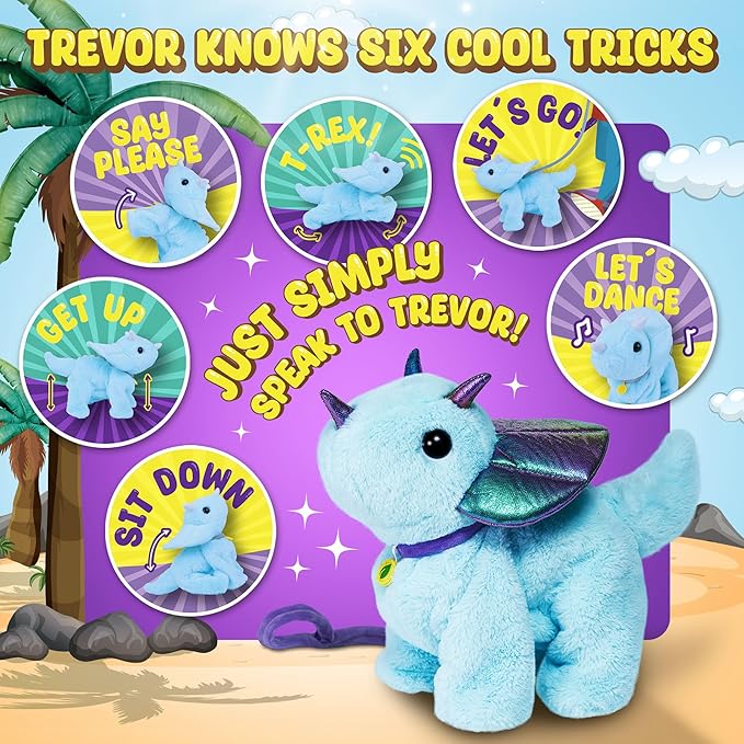 - 🦖 6 VOICE-ACTIVATED TRICKS: Command Trevor to sit, beg, play injured, walk, stand, and dance!