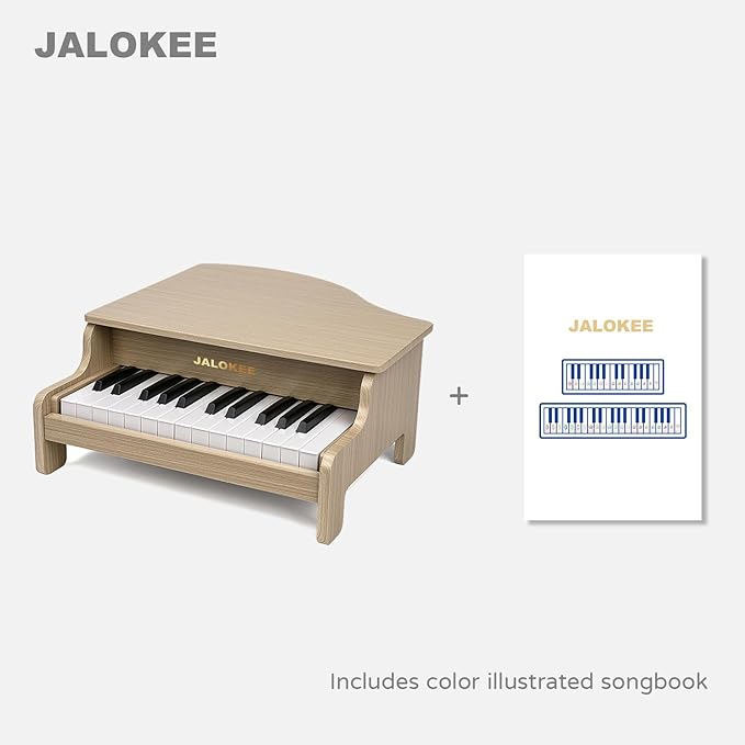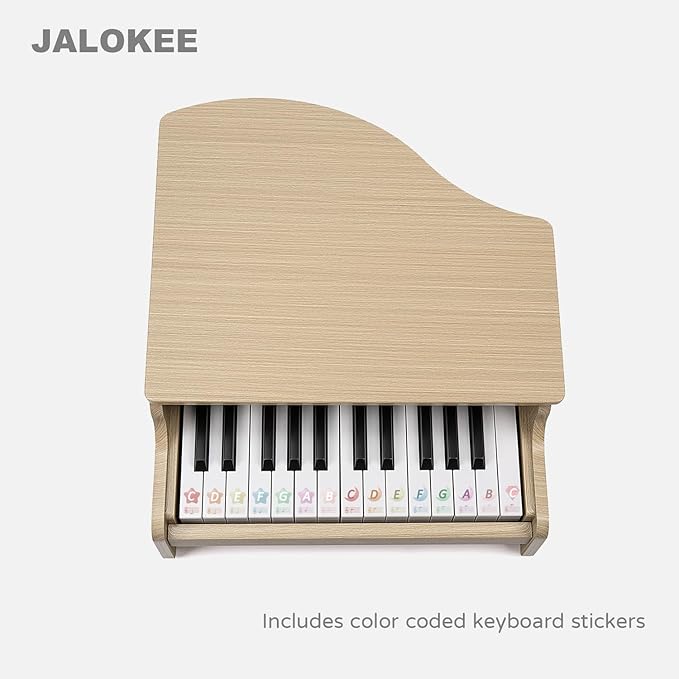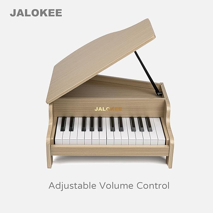 - 【25 KEYS DIGITAL PIANO】This JALOKEE piano is a miniature upright wooden piano that features 25 keys and 2 full octaves and offers an ideal introduction to music and help children transition to a full-size piano as they grow in age and experience. The sounds are made electronically with precision to eliminate the need for hand-tuning.