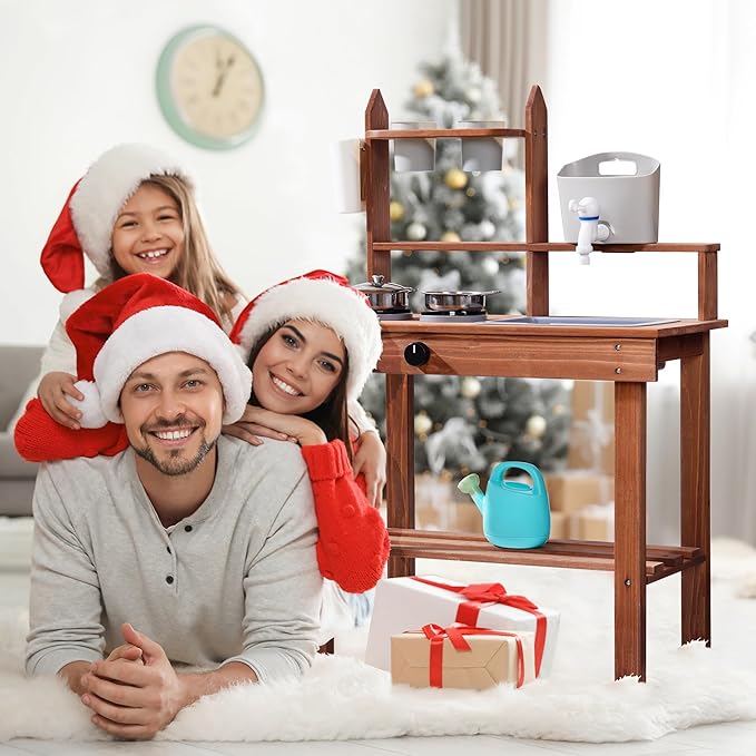 - EXCITING GIFT FOR KIDS 3+: This mud kitchen for kids outdoor is suitable for various scenarios, such as children's rooms, living rooms, gardens, backyards, terraces, etc. Meanwhile, this toy kitchen is an excellent gift for boys and girls on birthdays, parties, Christmas, Easter, New Year, and other holidays