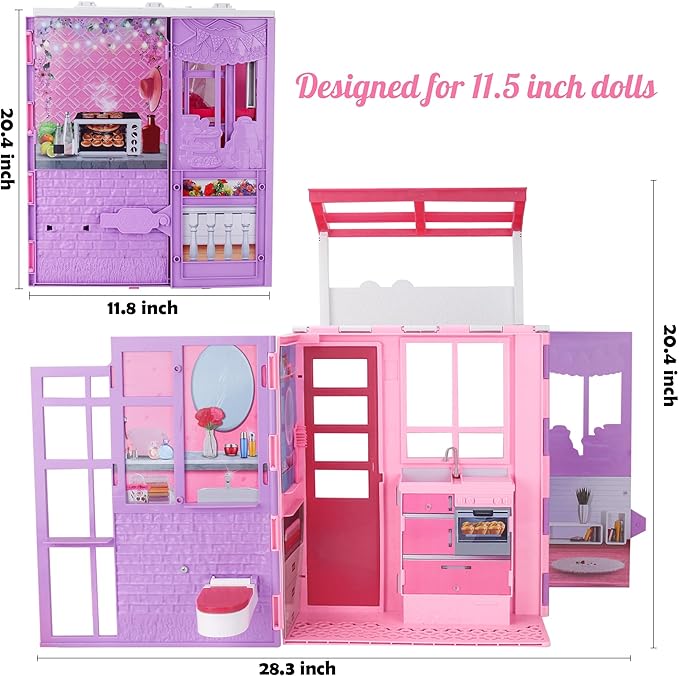- Perfect Fit for 11-12'' Dolls:Measuring 20.4 inches in height, this dollhouse is specifically designed to accommodate 11-12'' dolls. Your child's favorite dolls will feel right at home in this spacious and stylish dollhouse.