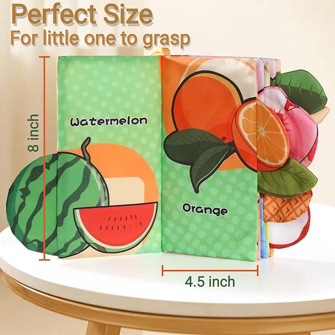 - Multi-Sensory Experience: With crinkle pages and various textures to touch and feel, these infant books baby toys stimulates your little one's senses and encourages exploration; the fruit theme book comes with squeaky elements
