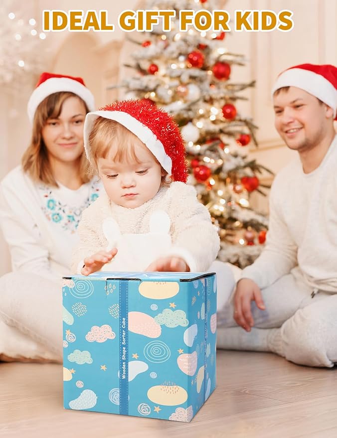- Ideal Gift: This gift-wrapped wooden shape sorter cube is a good gift toy for boys and girls, ideal for birthdays, Christmas, or everyday celebrations