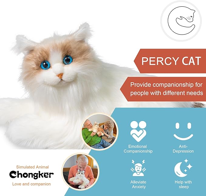 Chongker Interactive Companion Robot Cat Pets, Handmade Weighted Stuffed Animals, Cat Plush Toy with Voice Response, Realistic Heartbeat and Purring, Ragdoll Cat
