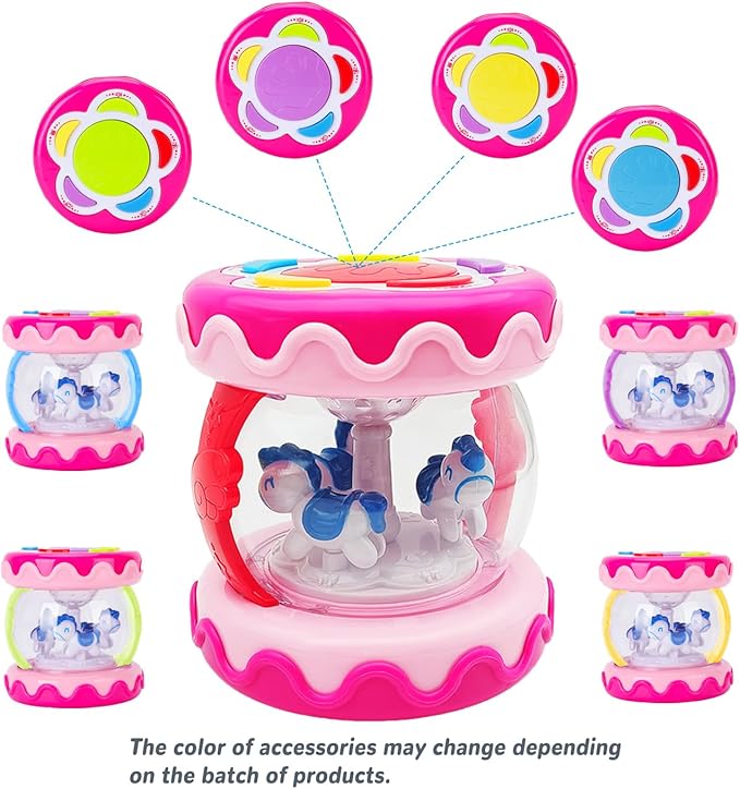 Baby Girl Toys 18+ Months Hand Drum Rotating Musical Light Up Sensory Activity Crawling Toys 2 3+ Year Old Infant Girls Baby Gifts (Pink)