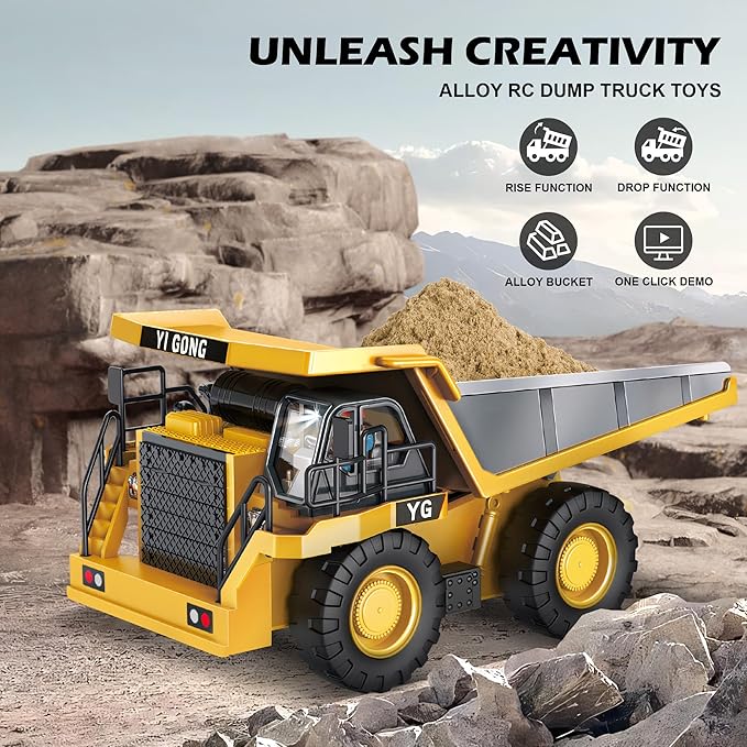 - 【Realistic Effect】The remote control dump truck have realistic lights and an articulated body. Children can enjoy hours of imaginative play as they mimic real construction tasks with this feature-packed toy.