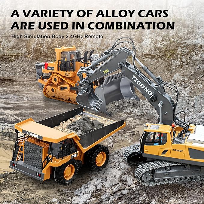 - 【2.4Ghz Responsive Control】The remote control truck is equipped with a 2.4GHZ transmitter, which supports several toy cars running at the same time without interfering with each other. Come to compose your own engineering fleet.