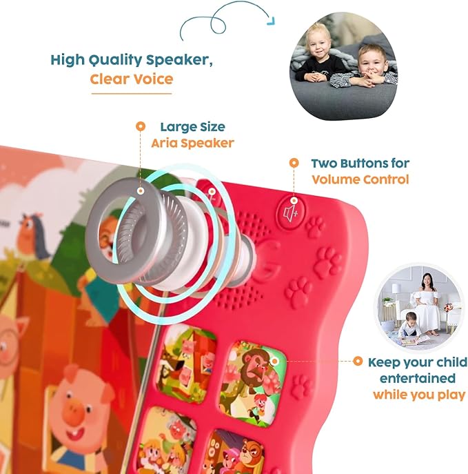 - 9 Full-Length Songs for Lasting Fun: Enjoy 9 enchanting songs, each lasting 40-70 seconds—perfect for keeping young minds engaged. Unlike typical sound books with brief tunes, this baby book with sounds features extended songs with lively vocals and a real child’s voice, encouraging rhythm, focus, and attention. Ideal as a talking book or for families exploring musical books for toddlers 3-5 or tools to learn English for kids.