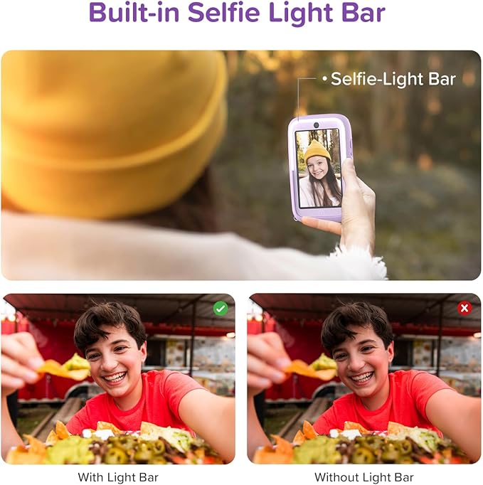 - [The Ultimate Selfie Machine] Capture flawless selfies with the Camera 50's built-in, adjustable Selfie Light Bar. This game-changer offers three warm lighting modes from cozy to neutral, all set to a gentle 4000K temperature, our Selfie Light Bar makes sure every selfie looks naturally awesome.