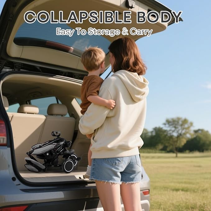 - Simple To Fold: The toddler trike folds quickly for easy storage and travel; The central and rear foot pedals are foldable; There is a front wheel clutch to release or limit the foot pedal; The front handle is collapsible; Detachable and adjustable armrest
