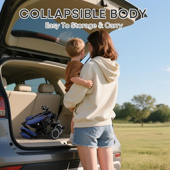 - Simple To Fold: The toddler trike folds quickly for easy storage and travel; The central and rear foot pedals are foldable; There is a front wheel clutch to release or limit the foot pedal; The front handle is collapsible; Detachable and adjustable armrest