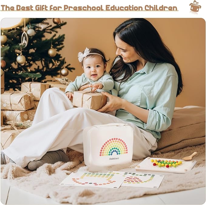 - Funny Toys for Toddlers - Our game Rainbow clip beads are made of high quality wood and are also carefully sanded, which prevents children from getting cuts and splinters. Little boys and girls are delighted with the opportunity to create a drawing, a work of art and crafts from wooden bright colored balls in our puzzle board game for kids