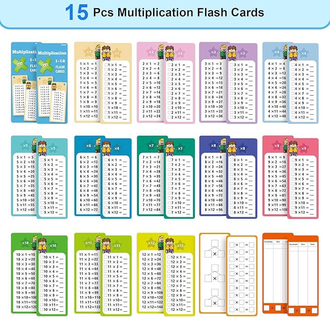 - 【Sturdy & Reusable】Our multiplication flash cards are made of thickened cardboard, which is waterproof ,fade-resistant and will not tear after multiple uses. The flashcards are clear and colorful, the font is easy to read and the cards are sturdy. With dry erase pens, all the cards can be reused.