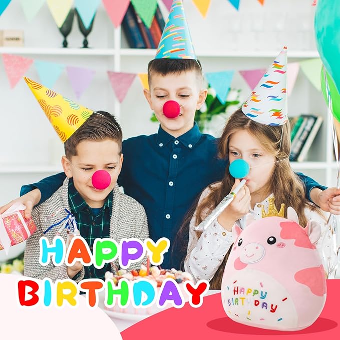 - 【Unique Design】 Pink cow plush wears a golden crown. The words "HAPPY BIRTHDAY" are embroidered on the belly. No one can resist its charm. All bad emotions and work stress will disappear when you embrace the plushie toy!
