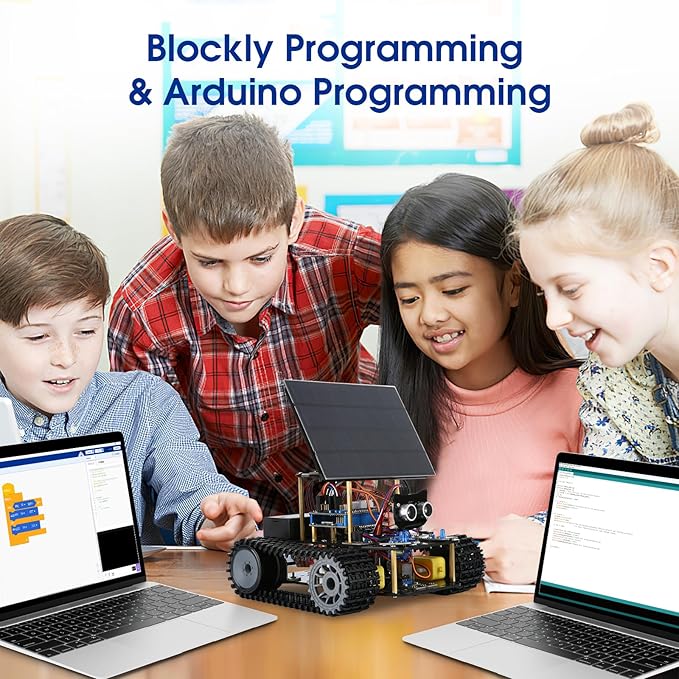 - Beginner-friendly: The ACEBOTT ESP32 smart tank solar Robot Car kit is controlled by an advanced ESP32 controller board, making programming easy. Through 16 story-rich tutorials, students will systematically master the principles of programming and electronic hardware, and easily master the mysteries of the smart car. (The kit does not include batteries)
