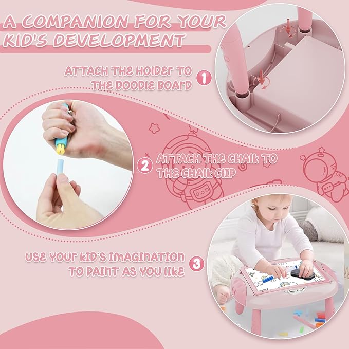 - 🎨【Unlimited Creativity Toddlers Drawing Board】 - This toddler drawing board features four removable legs that can be easily removed and installed, allowing your child to sit at a doodle drawing table or use it as a doodle drawing board flat on their lap. Your kids can choose the drawing position that best suits their needs and draw comfortably, helping to develop proper sitting posture.