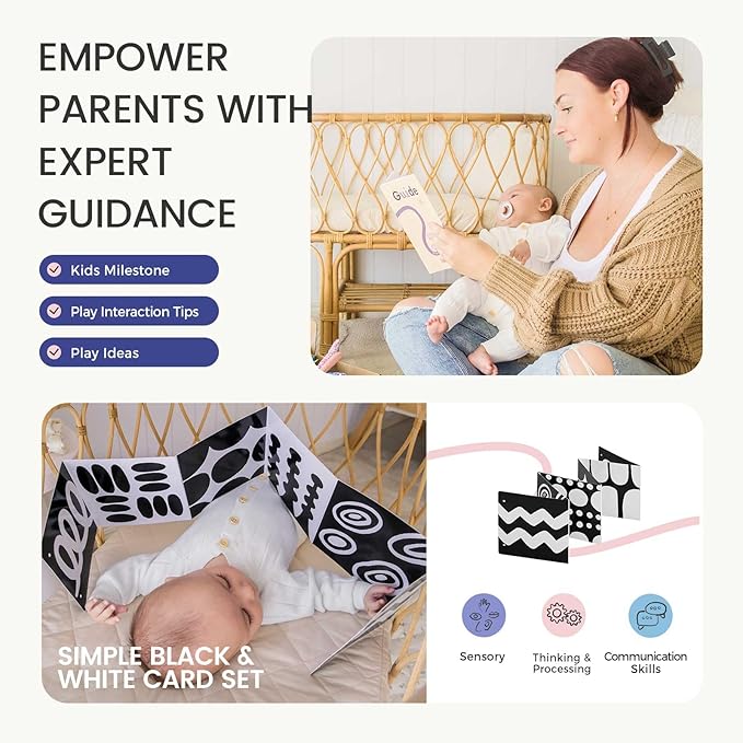 - Stimulate Visual & Auditory Senses: Newborns are highly sensitive to light and sound. The rolling bell and black & white cards engage your baby's attention, effectively stimulating visual and auditory development while encouraging focus and tracking skills