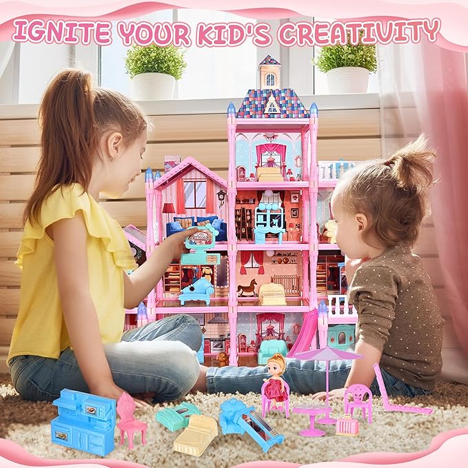 - 【Perfect Gift for Little Dreamers】Ideal for girls aged 3-12, this dollhouse is a fantastic gift for Christmas day , Birthdays, New year, or any special occasion. It encourages creativity, role-playing, and hands-on skills while providing hours of fun and parent-child bonding opportunities.